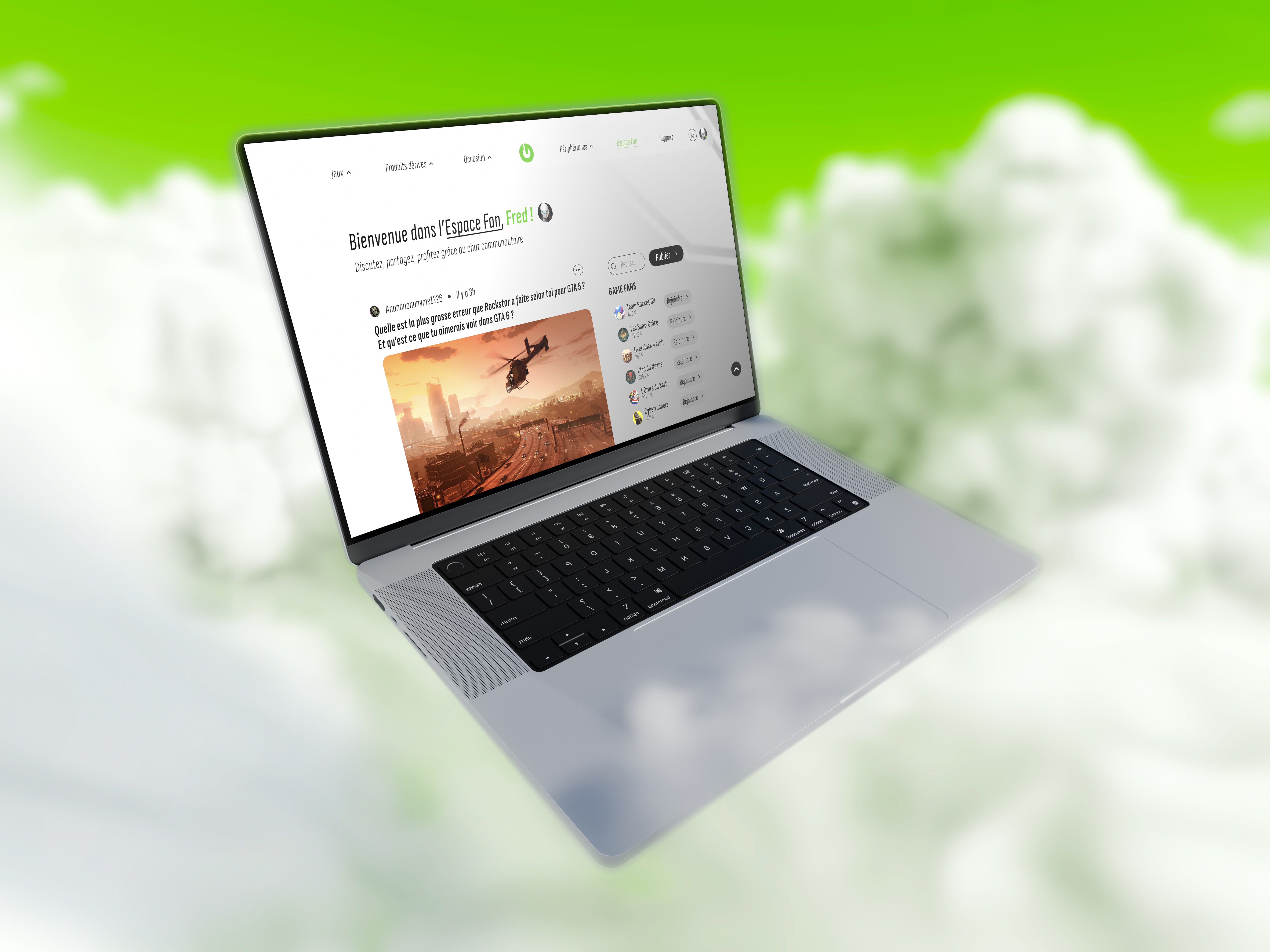 La plateforme combine boutique, fiches produits détaillées, produits d’occasion, espace fan et support, avec une architecture pensée pour guider naturellement l’utilisateur vers l’action.